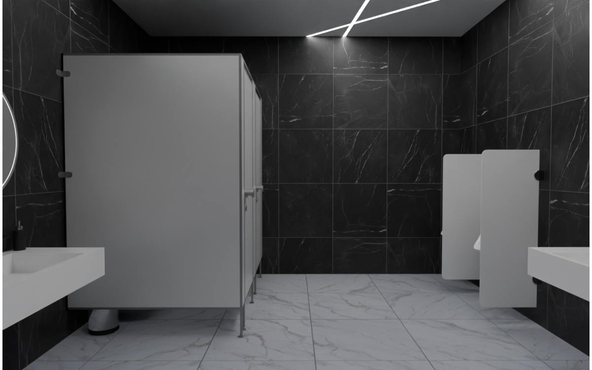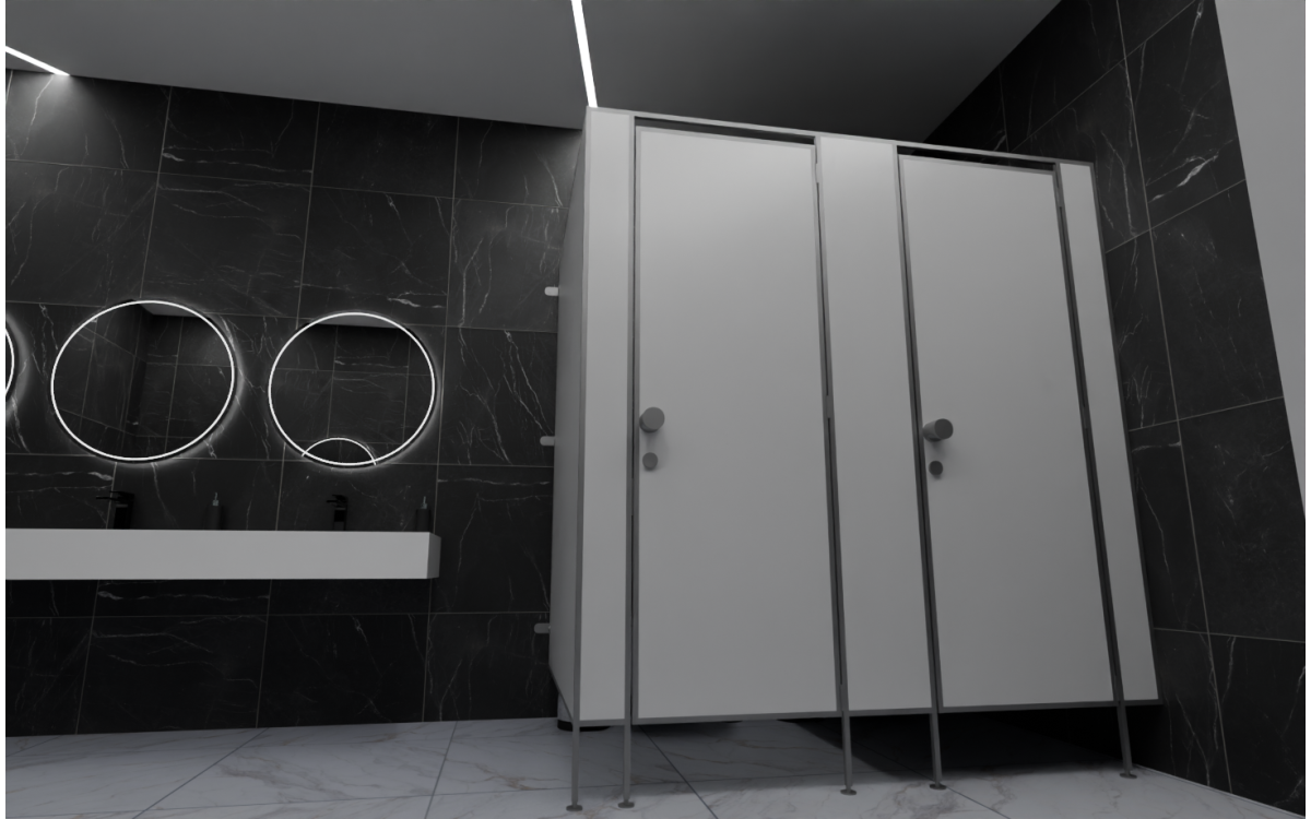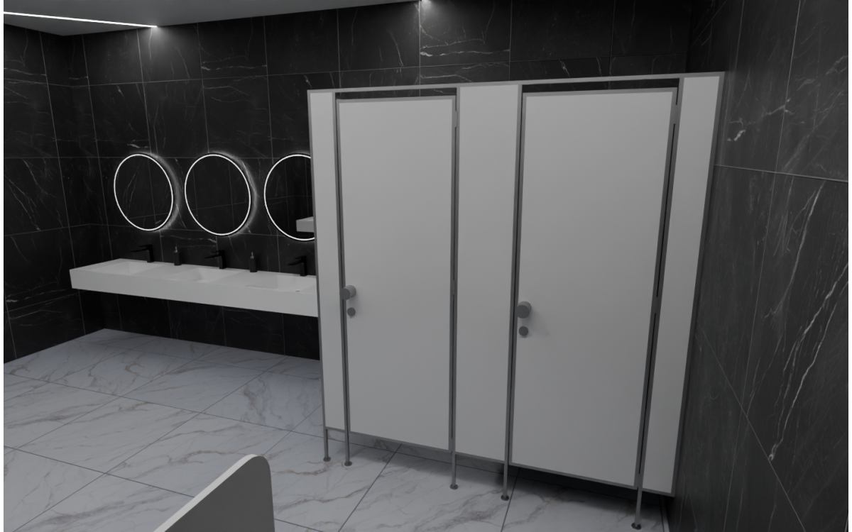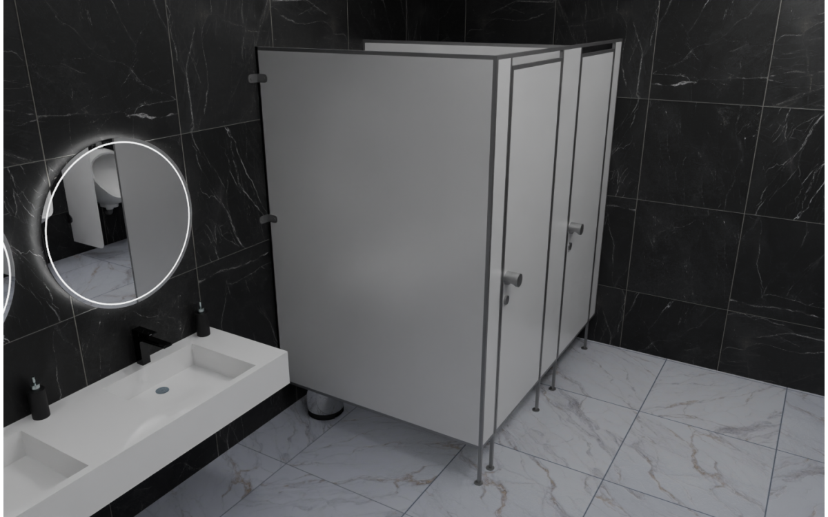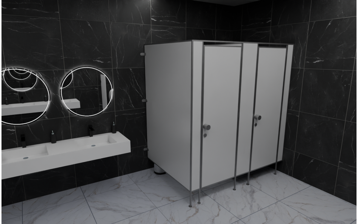 Перегородки из ЛДСП-пластика на две кабины (1800*900*2000 мм.) - устойчивы к загрязнениям, легко моются, не боятся частых уборок и отвечают санитарным требованиям Роспотребнадзора. Благодаря адаптивной конструкции и компактным габаритам, возможен монтаж даже в ограниченном пространстве без потери функциональности.